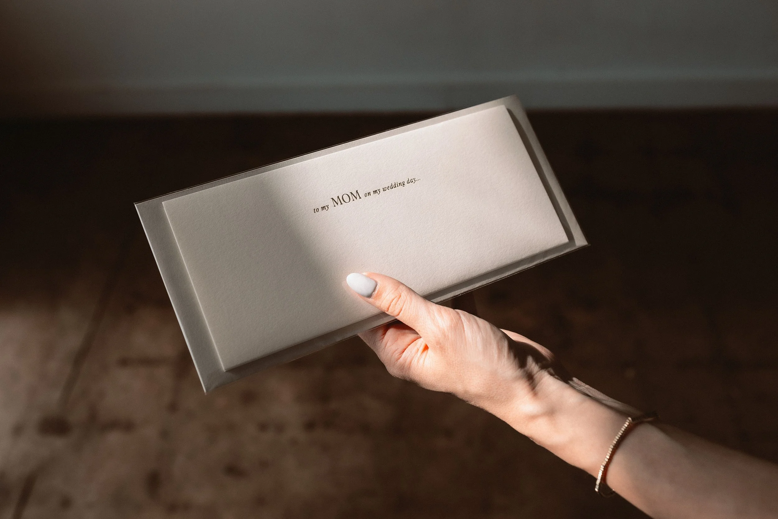 This letter-sized stationery is a lovely, soft, warm grey with hints of beige. It is crafted from high-quality 100% cotton paper and features a beautiful gold letterpress design, creating a clean and sophisticated look.